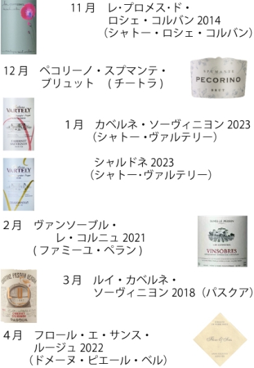 2025年11月〜2026年4月まで毎月末にその月にあったワインをお届けする頒布会です。