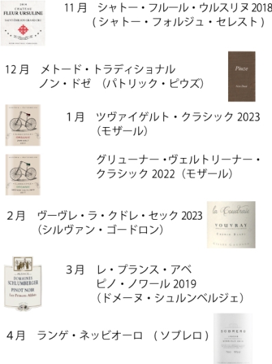 2025年11月〜2026年4月まで毎月末にその月にあったワインをお届けする頒布会です。